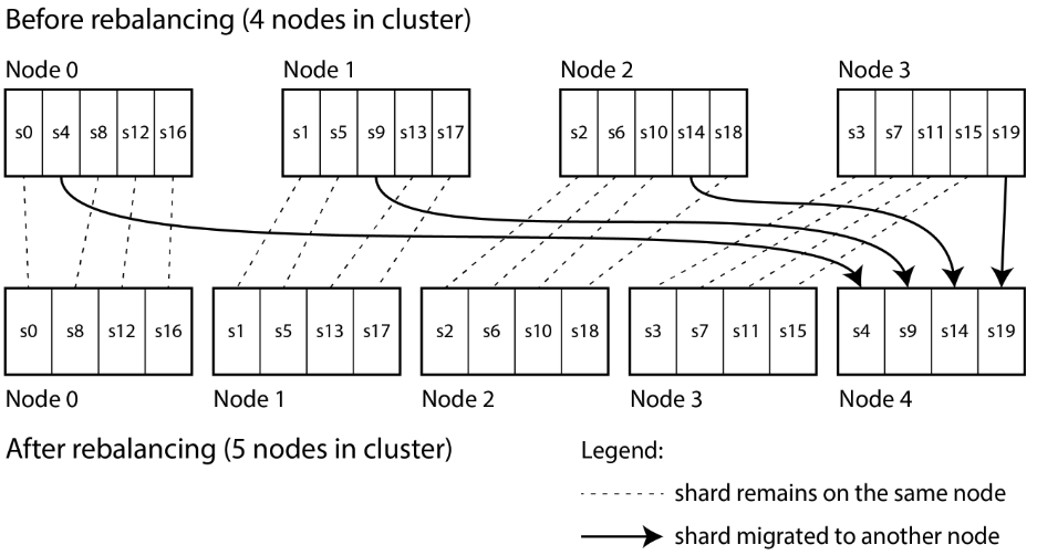 - The number of shards does not change, nor does the assignment of keys to shard. The only change is the assignment of shards to nodes.