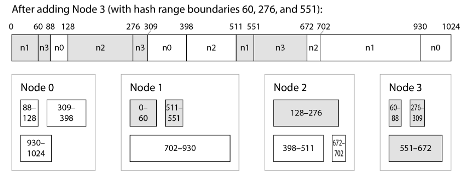 - 3 ranges per node here, but in Cassandra by default, the actual number is 8 per nodes.